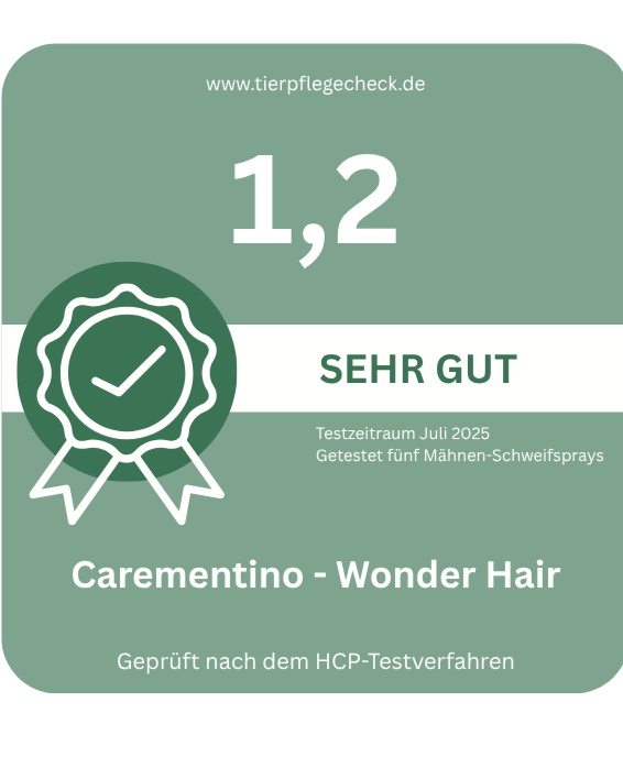 Das Carementino Mähnen- & Schweifspray setzt neue Maßstäbe in der Pferdepflege: Eine innovative, rein pflanzliche Rezeptur mit Aloe Vera, Kamille, Ringelblume und weiteren hautberuhigenden Extrakten pflegt Mähne und Schweif spürbar weich, verbessert die Kämmbarkeit und verleiht natürlichen Glanz – ganz ohne Silikone, Parfüme oder Mikroplastik.