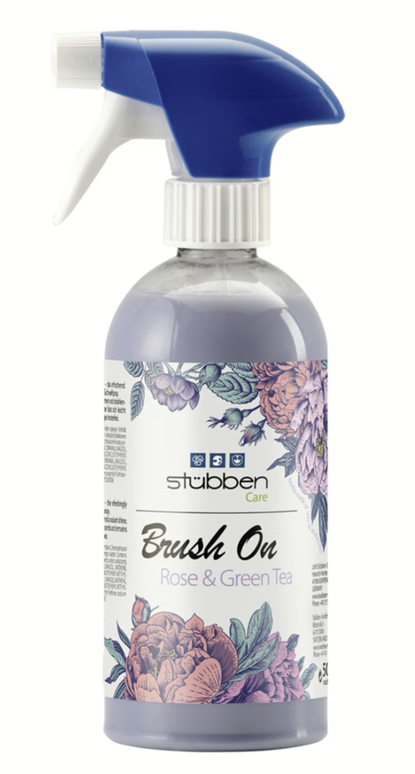 Das Brush On Spray von Stübben sorgt für schnellen Glanz und gute Kämmbarkeit, vor allem bei trockenem, strapaziertem Schweifhaar. Die Kombination aus Silikonölen und Panthenol wirkt effektiv, die Duftnote „Rose & Green Tea“ hinterlässt einen deutlich wahrnehmbaren Geruch. Das Produkt kann ebenfalls in einem Liter Kanister nachgekauft werden.